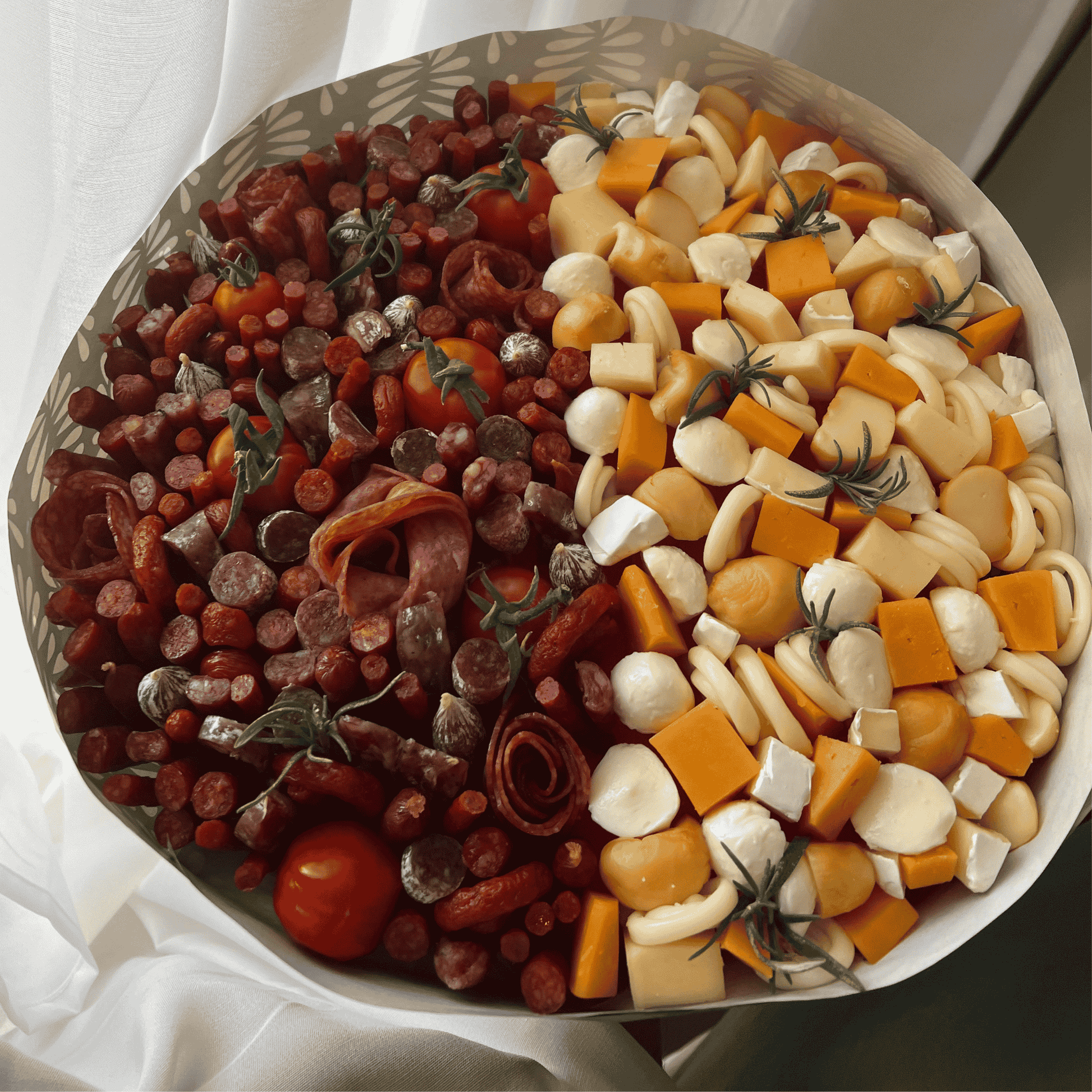 Když se spojí to nejlepší ze světa sýrů a uzenin, vznikne jedlý puget, který potěší každého milovníka delikates. Polovina plná vyzrálých sýrů, druhá z pečlivě vybraných uzenin – salámy, šunky, klobásky. Vše krásně naaranžované a doplněné o olivy, pečivo nebo rozmarýn pro ještě výraznější zážitek. Elegantní dárek pro ty, kteří si umí užít dobré jídlo stylově.