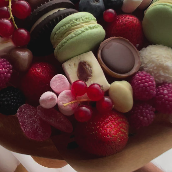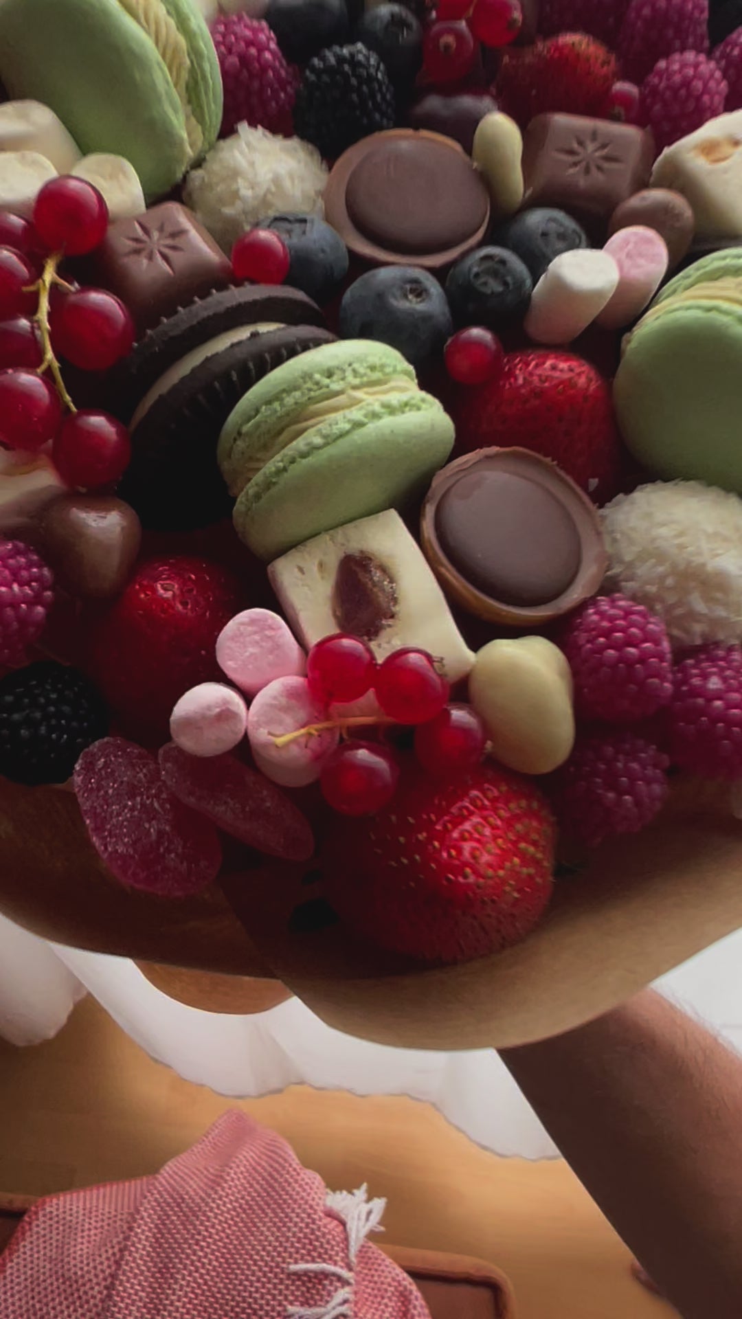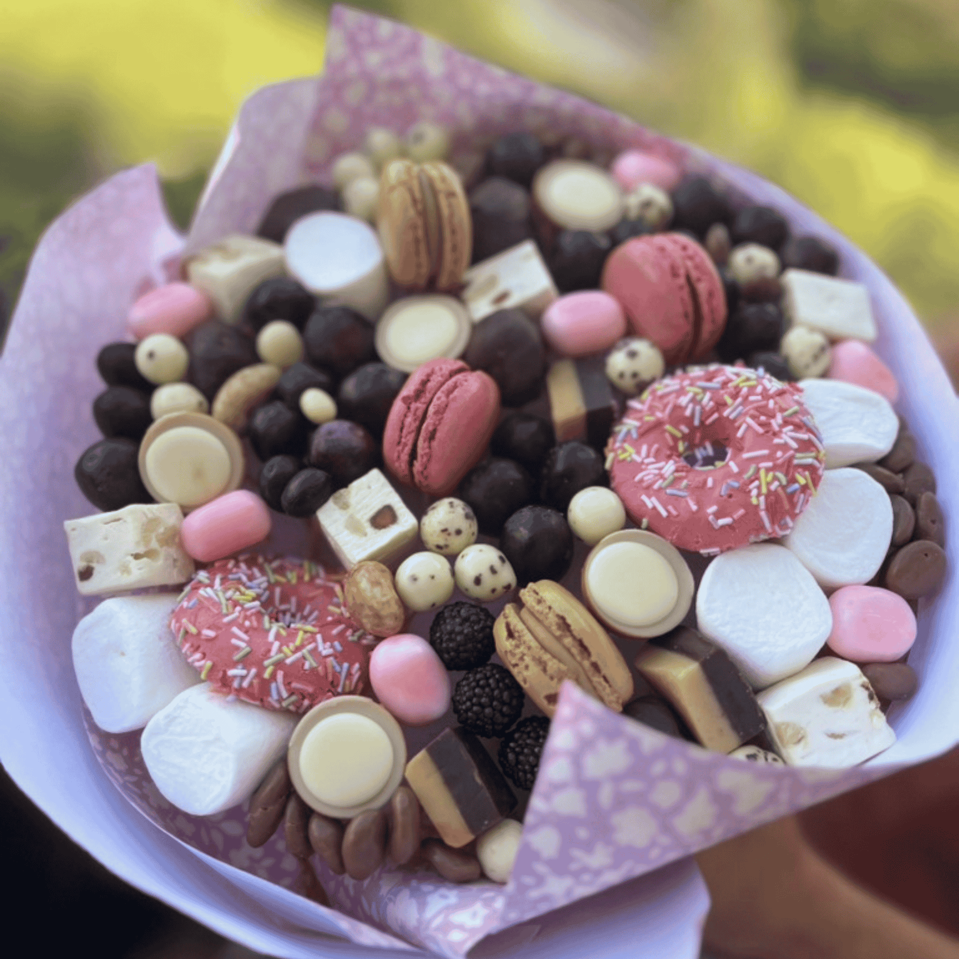 Sladký, voňavý, krásný– a k nakousnutí! Náš sladký puget se perfektně hodí jako dárek pro milovníky sladkostí, k narozeninám, svátku nebo prostě jen tak pro radost. Uvnitř najdeš pestrou kombinaci čerstvého ovoce, čokolády, sušenek, marshmallows a dalších dobrot – vše pečlivě naaranžováno do elegantní kytice, která potěší srdce i chuťové buňky.