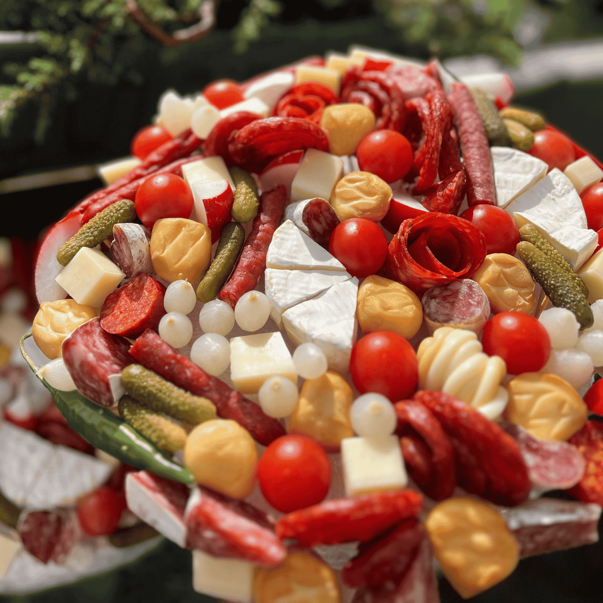 Když chcete darovat něco netradičního, co nejen potěší oči, ale i chuťové buňky! Střední velikost našeho pugetu – ideální jako dárek pro gurmány, chlapy, kamarády nebo kolegy. Obsahuje kombinaci pečlivě vybraných sýrů, uzenin, zeleniny a dalších dobrot, které ladíme podle sezóny i dostupnosti. Každý kousek je ručně naaranžovaný, zabalený v elegantním papíru a ozdobený stuhou.
